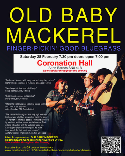 A terrific Bluegrass live band Old Baby Mackerel on Saturday 28 Feb - doors open 7pm, show starts 7.30pm