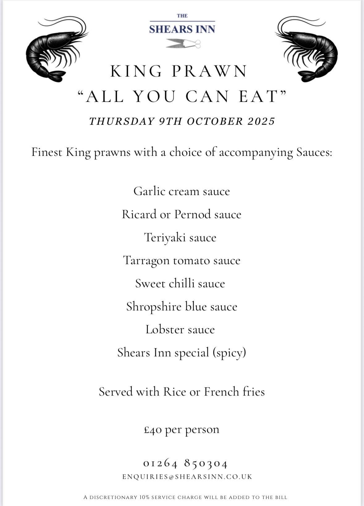 Don’t be disappointed this time book your table early limited spaces only!