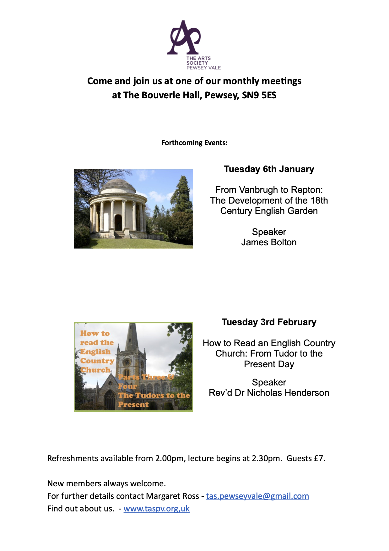 Refreshments available from 2.00pm, lecture begins at 2.30pm. Guests £7.