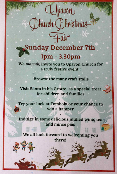 Sunday 7th December from 1pm to 3.30pm at Upavon Church